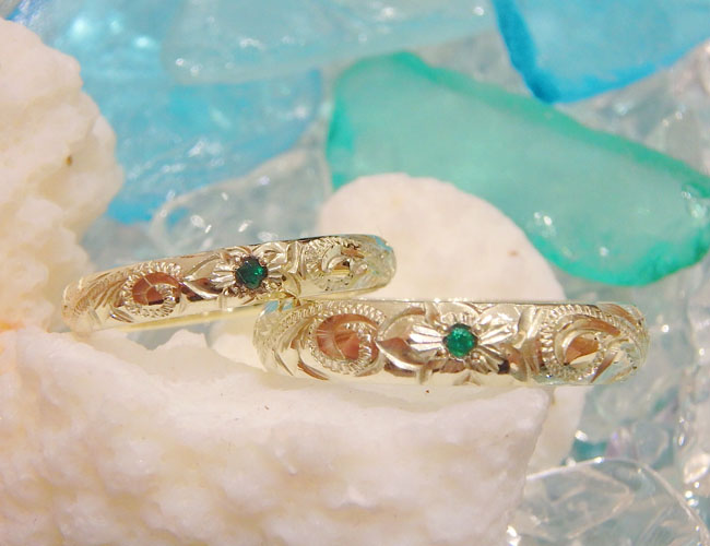 14K GreenGold Ring 3mm&4mm幅 M-113 エメラルド マリッジリング
