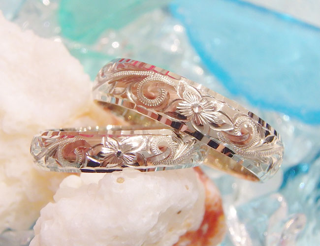 14K WhiteGold Ring バレルタイプ 5mm幅4mm幅 M-110 ダイヤモンドエッジ