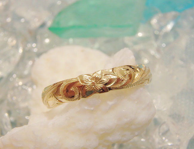 14K YellowGold 4mm幅 カットアウト プルメリア