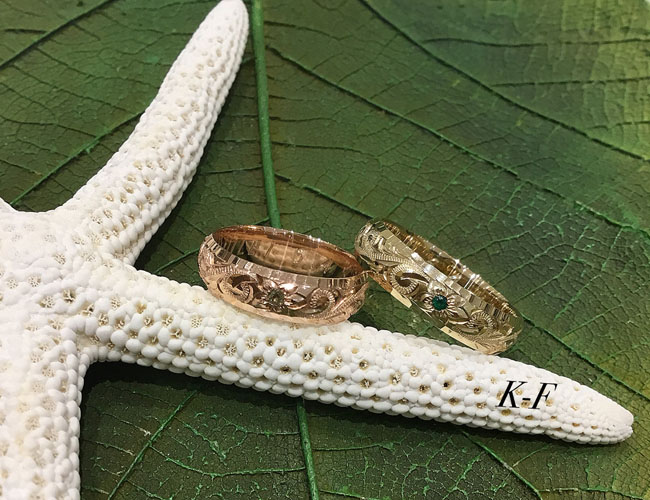 14K YellowGold&PinkGold 5mm幅 M-110 ダイヤモンドエッジ マリッジリング エメラルド